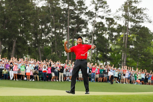 With Woods in the hunt at golf’s most prestigious tournament, CBS’ final-round coverage posted television’s highest-rated morning golf broadcast in 34 years — dating back to pretty much the beginning of Nielsen’s electronic monitoring — with a 7.7 rating/21 share in the 56 metered markets.