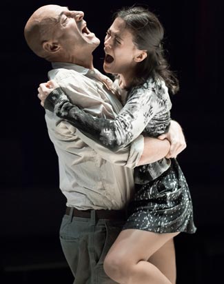 Most directors wait a few minutes into the Arthur Miller drama before telegraphing Eddie Carbone’s sexual desire for his niece, Catherine. (It happens when she lights his big cigar.) Van Hove is not most directors. His Catherine (Phoebe Fox) jumps up on Eddie (Mark Strong) the moment he arrives home, wrapping her legs around his waist to hug him.