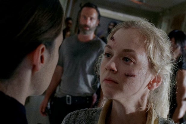 Beth (Emily Kinney) finally had enough of Dawn, the tyrannical overlord of Grady Memorial Hospital, stabbing her with a pair of scissors as a parting gift. But Dawn immediately shot Beth in the head — prompting Daryl to in turn shoot Dawn.