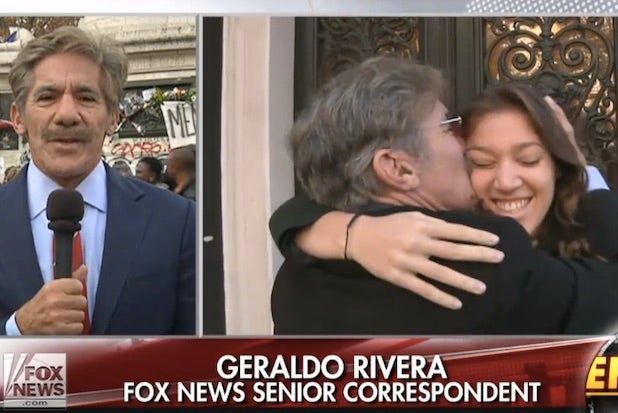 Geraldo Rivera reunited with his daughter Simone over the weekend after the 21-year-old went through the traumatic experience of watching a soccer game in Paris when bombs went off on Friday.