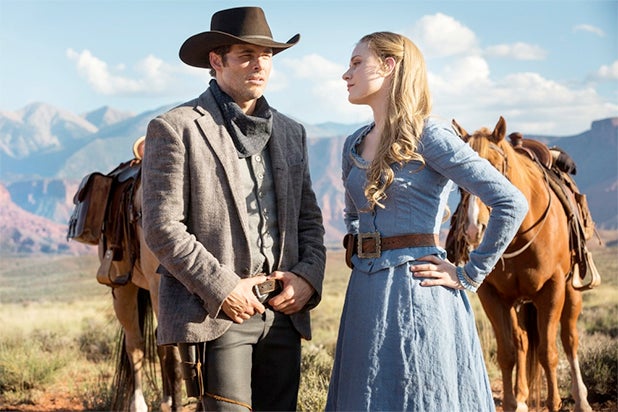 James Marsden and Evan Rachel Wood as Teddy and Delores, two characters who have a history and an uncertain future.
