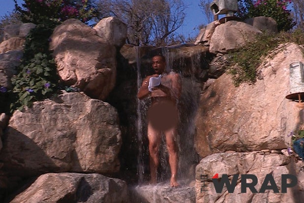 FoxChef Aaron gets his chance for dip under the falls and it might be a bit too chilly.