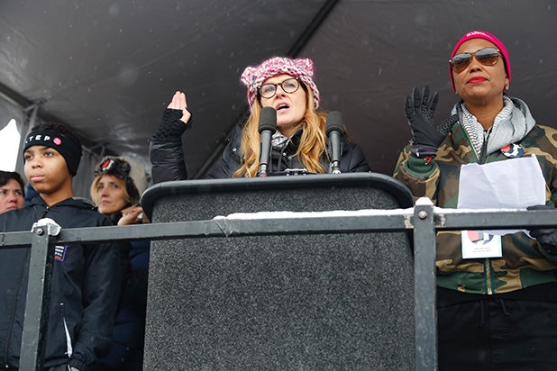 “Taken” star Jennifer Beals (seen here with Chelsea Handler in Park City) told TheWrap: “I am going to march. I have a film at Sundance and there’s a march planned there, I’m going to march, and use my voice, and stand up. It’s no longer sufficient to sit behind your computer or just watch as events unfold. Your civil liberties are not necessarily guaranteed and you must learn to fight for them each and every day.”