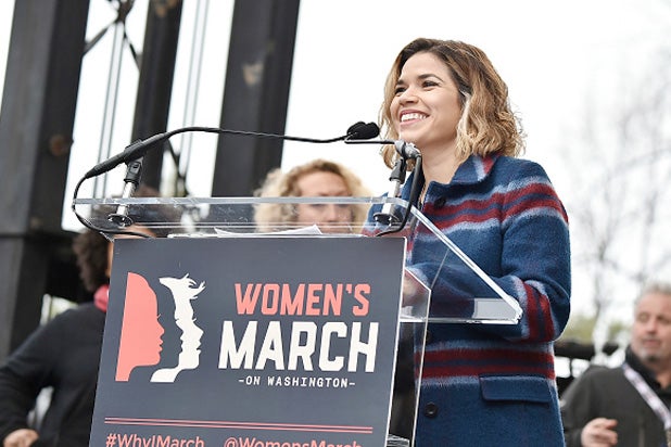 America Ferrara watched Clinton’s defeat at the Democratic candidate’s New York City watch party. She has called on artists to “stand together in solidarity for the protection, dignity and rights of our communities.”
