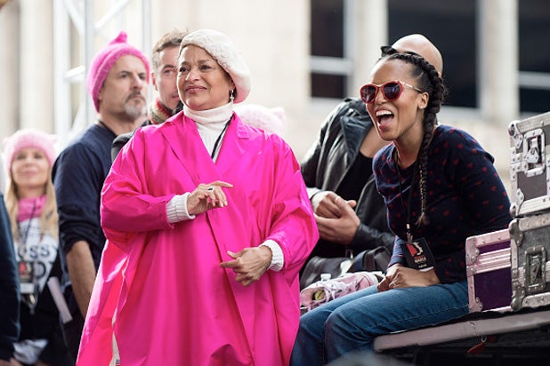 Debbie Allen and Kerry Washington enjoy a moment at the Women’s March in L.A.